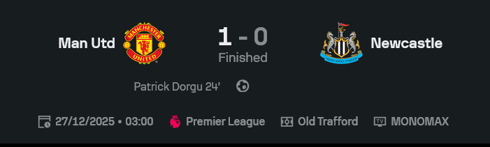 - ค่า xG: แมนฯ ยูไนเต็ด 1.17 – 1.18 นิวคาสเซิ่ล (สูสีแต่ฝั่งผีคมกว่า)