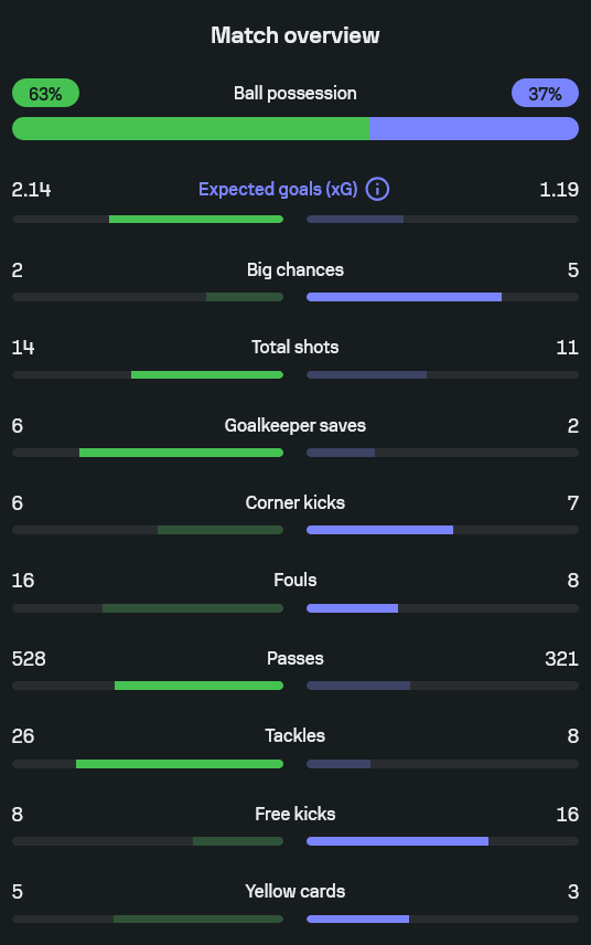 - เซฟผู้รักษาประตู: โรเบิร์ต ซานเชซ ต้องเซฟ 6 ครั้ง ขณะที่ เอมี มาร์ติเนซ เซฟแค่ 2 หน