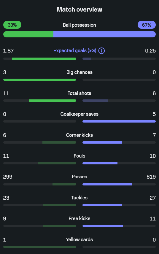 - ค่า xG: วูล์ฟส์ประมาณ 1.87 vs เวสต์แฮม 0.25 แปลตรงตัวว่าทีมเยือนแทบไม่เคาะประตู