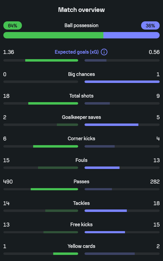 • ค่า xG วิลล่า 1.36 ส่วนเอฟเวอร์ตัน 0.56 บอกชัดว่าจังหวะลุ้นประตูวิลล่ามีเยอะกว่า แต่ยิงไม่คม