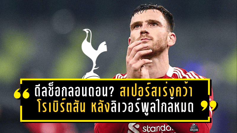 รายงานจาก เดวิด ออร์นสตีน นักข่าวชื่อดังของ The Athletic ระบุว่า ท็อตแน่ม ฮ็อทสเปอร์กำลังพยายามเดินหน้าเพื่อคว้าตัวโรเบิร์ตสัน โดยออร์นสตีนโพสต์ผ่าน X เมื่อวันศุกร์ที่ 23 มกราคม ว่า “ท็อตแน่ม ฮ็อทสเปอร์ กำลังดำเนินการเพื่อเซ็นสัญญาคว้าตัว แอนดี้ โรเบิร์ตสัน จาก ลิเวอร์พูล”