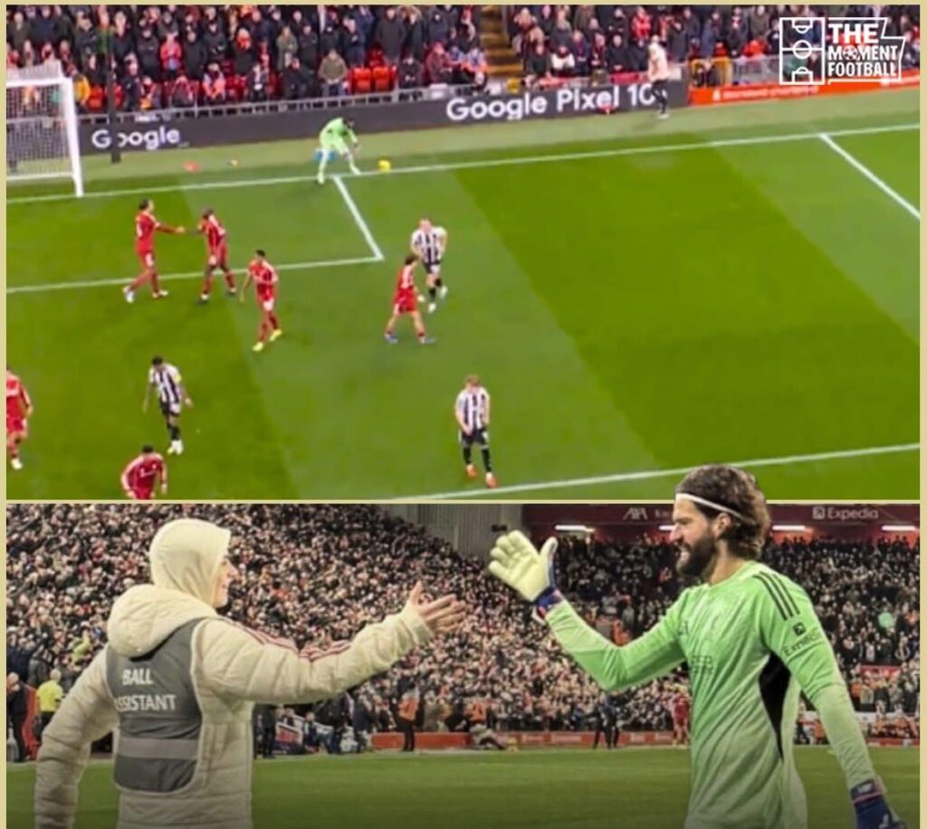 สถานการณ์เกิดขึ้นตอนบอลออกหลังฝั่งเจ้าบ้าน และ อลีสซง เบ็คเกอร์ ต้องการบอลอย่างเร่งด่วนเพื่อเล่นเร็วทันที เพราะแนวรับของทีมเยือนยังจัดระเบียบไม่ทัน จังหวะนั้นเอง “บอลบอย” ที่ชื่อ แม็กซ์ โรว์แลนด์ เหมือนรู้หน้าที่โดยสัญชาตญาณ รีบโยนบอลให้อลีสซงแบบไม่เสียจังหวะ