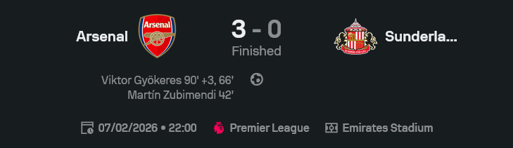 ซูบีเมนดี้ คุมจังหวะตรงกลางสนามเนียนตา ส่วน เดแคลน ไรซ์ กับไค ฮาแวร์ตซ์ ช่วยวิ่งปิดพื้นที่ ทำให้แผงหลังแทบไม่ต้องออกแรงแก้บอลยากมากนัก เกมรุกช่วงแรกอาจดูอืดๆ แต่พอส่ง กยูเกอเรส ลงมา แรงปะทะและการวิ่งดึงตัวประกบทำให้แนวรับซันเดอร์แลนด์เริ่มหลุดไลน์ แล้วนั่นแหละ ประตูที่สองและสามก็มาแบบไม่เกรงใจกันเลย