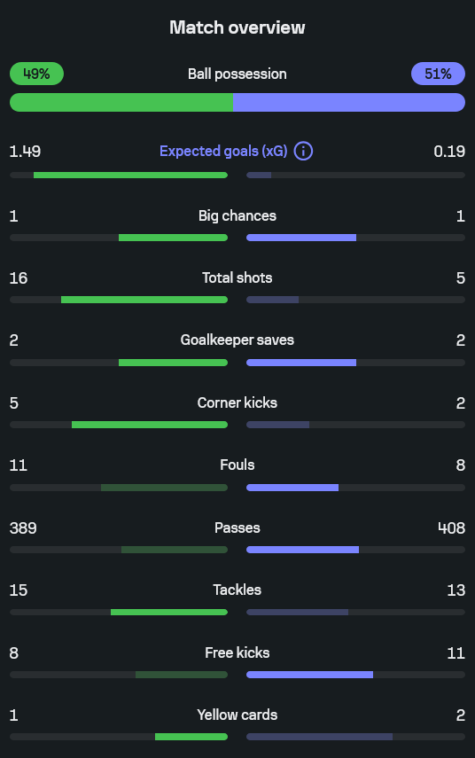 - ค่า xG: ปืนใหญ่กดไป 1.49 vs แมวดำแค่ 0.19 บอกภาพชัดว่าใครได้โอกาสจริงจัง