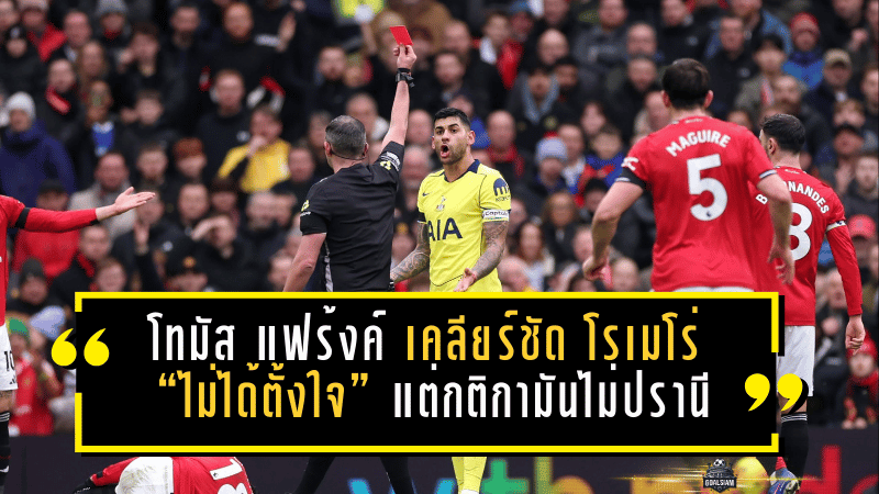 หลังเกม โธมัส แฟร้งค์ ออกมายืนยันตรง ๆ ว่าลูกทีมของเขา “ไม่ได้มีเจตนา” จะเล่นงานหรือพุ่งเสียบให้ถึงขั้นต้องโดนไล่ออก เขามองว่าโรเมโร่พยายามเข้าหาบอลอย่างชัดเจน เพียงแต่ความเร็วของจังหวะและจุดปะทะมันดันออกมาโหดเกินภาพที่ควรจะเป็น