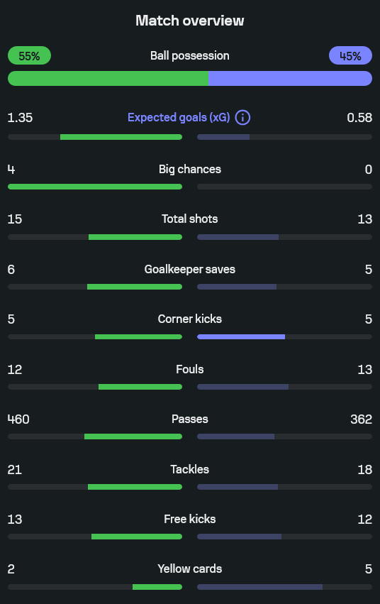- xG แมนซิตี้ 1.35 – 0.58 นิวคาสเซิล