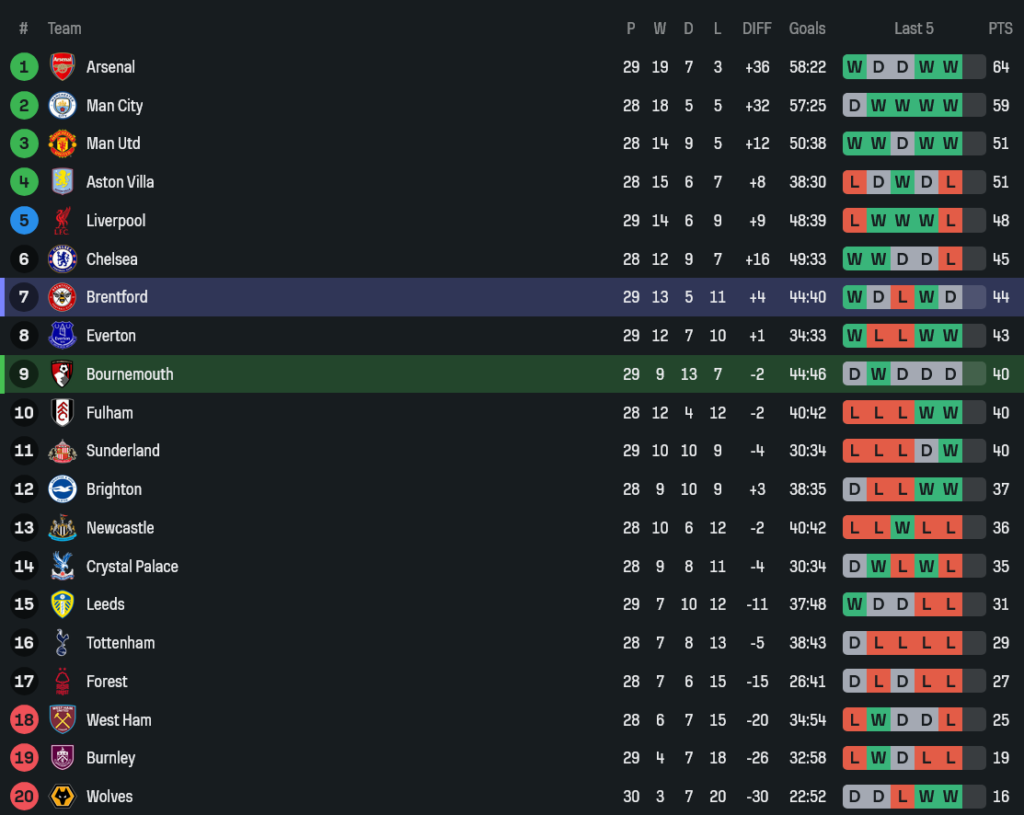 • ยิงทั้งหมด: บอร์นมัธ 13 | เบรนท์ฟอร์ด 5