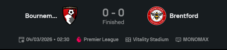 เกมนี้จบ 0-0 ก็จริง แต่สกอร์หลอกตา เพราะ ผลบอลสด มันนิ่งเหมือนน้ำเปล่า ทั้งที่ในสนามเดือดเป็นน้ำซุป บอร์นมัธบุกกดแทบทั้งเกม ได้ลุ้นเป็นระยะจนคนดูเริ่มหายใจไม่ทั่วท้อง แต่จังหวะสุดท้ายดันติดคำสาป “ขออีกนิด” ตลอด 90 นาที