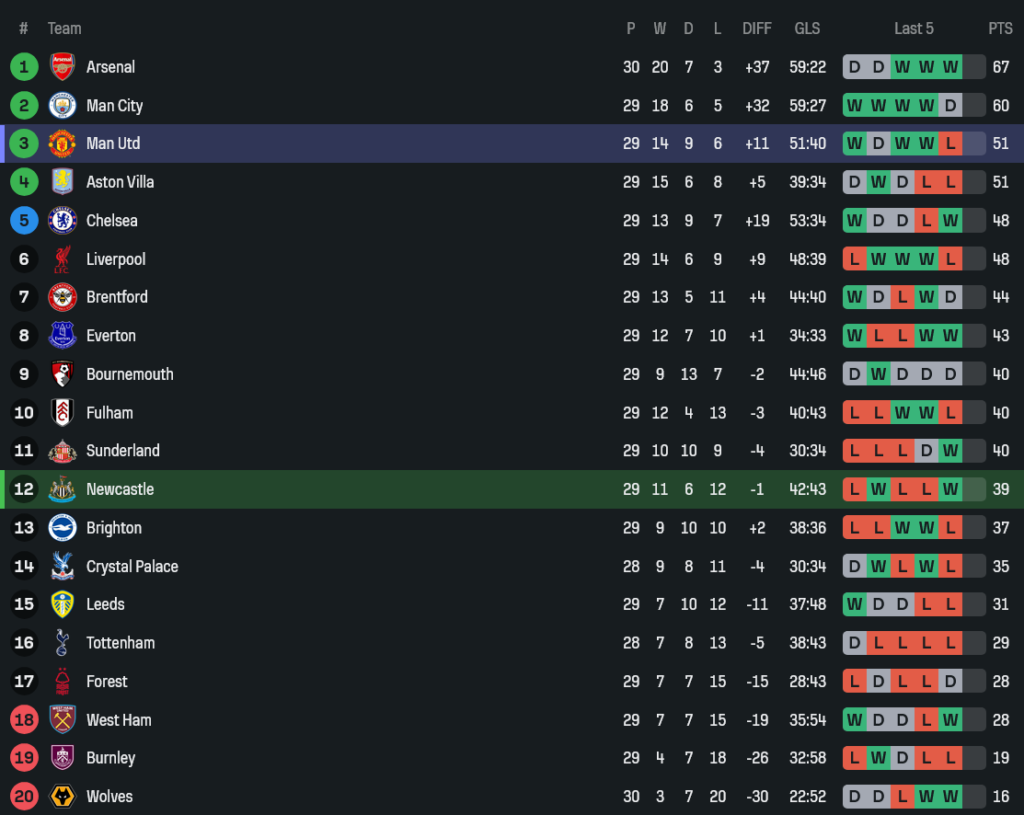 - ยิงทั้งหมด: นิวคาสเซิล 12 แมนยู 14