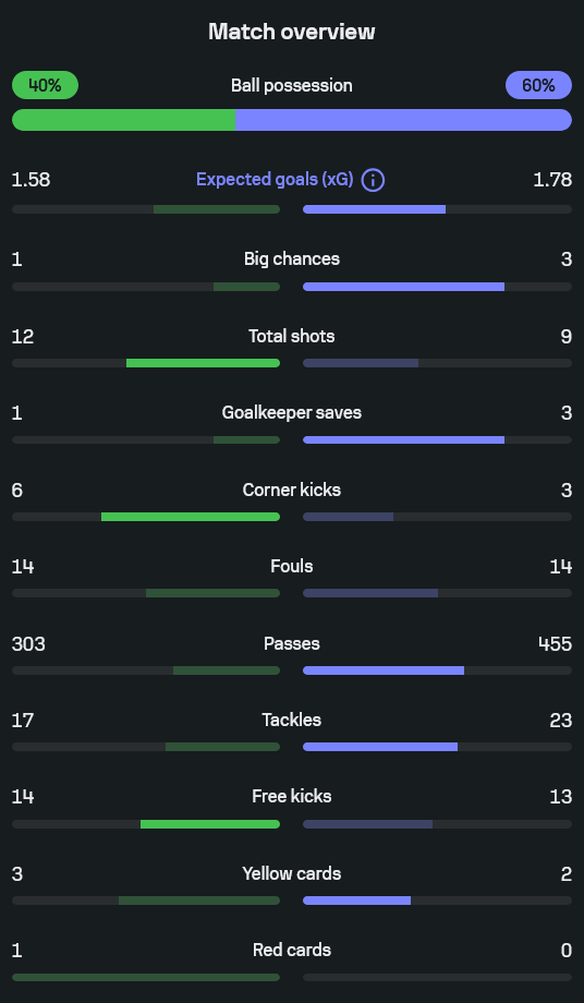 - ครองบอล สเปอร์ส 40 เปอร์เซ็นต์ พาเลซ 60 เปอร์เซ็นต์