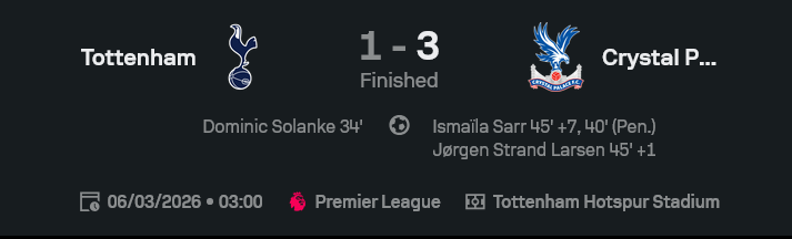 ถ้าจะให้พูดแบบไม่ไว้หน้า นี่คือเกมที่สเปอร์สทำตัวเองล้วน ๆ นำแล้วไม่ปิด เสียคนแล้วเสียทรง พอเสียทรงก็เสียประตูตามแพ็กเกจ ส่วนพาเลซเล่นด้วยสมองและความเด็ดขาด สมกับเป็นทีมที่ไม่หวือหวาแต่พร้อมเช็กบิลทุกครั้งที่คู่แข่งเผลอ ใครตามสาย วิเคราะห์บอล จะเห็นเลยว่าเกมนี้จุดตายของไก่คือวินัยเกมรับ ไม่ใช่เรื่องแท็กติกหรูหราอะไรเลย