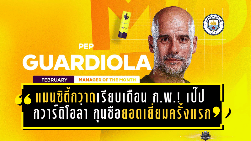 ผลงานมันชัดจนเถียงไม่ลง เมื่อกุนซือชาวสเปนพา แมนเชสเตอร์ ซิตี้ เดินหน้าแบบไม่เสียทรงตลอดเดือนกุมภาพันธ์ เก็บแต้มเป็นกอบเป็นกำ และรักษาสถิติ “ไม่แพ้ใคร” ทั้งเดือน จนคว้า กุนซือยอดเยี่ยม ประจำเดือนได้แบบสมราคา