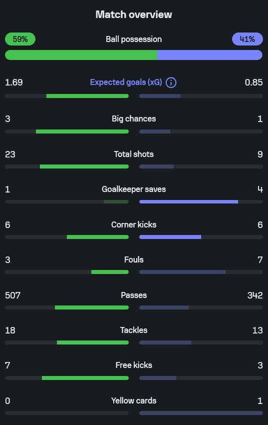 - ค่า xG วิลล่าสูงกว่าที่ 1.69 ต่อ 0.85