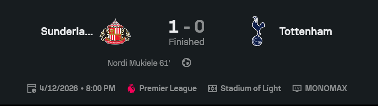เกม พรีเมียร์ลีก อังกฤษ คู่นี้จบแบบเจ็บ ๆ สำหรับฝั่งไก่เดือยทอง เพราะ ผลบอลสด บอกชัด ซันเดอร์แลนด์เฉือน 1-0 ทั้งที่รูปเกมไม่ได้หนีกันมาก