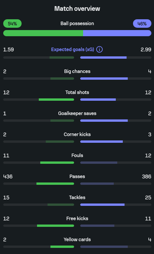 • บอร์นมัธมี xG สูงกว่า 2.99 ต่อ 1.59