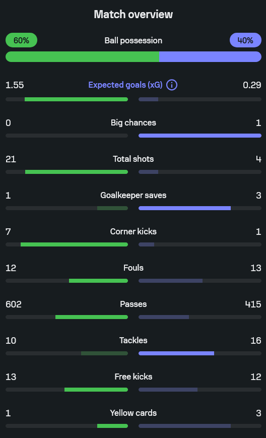 • เชลซีได้เตะมุม 7 ครั้ง แมนยูได้ 1 ครั้ง