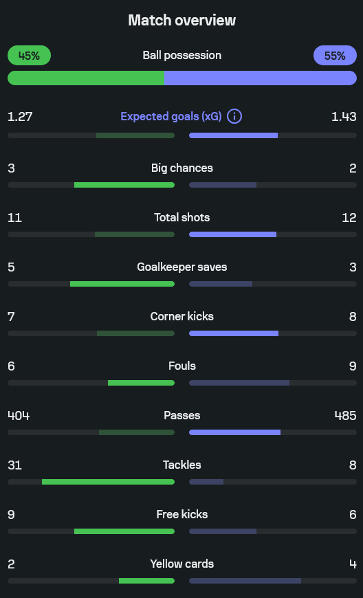 - นาที 43 แมนยูหนี 2-0 เบนจามิน เซสโก้ ยิงในเขตโทษจากแอสซิสต์ของ บรูโน่ แฟร์นันด์ส จบครึ่งแรกสวย ๆ