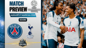 - วิเคราะห์บอล ยูฟ่าแชมเปียนส์ลีก : ปารีส แซงต์ แชร์กแมง พบกับ ท็อตแน่ม ฮ็อทสเปอร์ 26/11/68พรีวิวยูฟ่า แชมเปียนส์ลีก คู่ใหญ่ ปารีส แซงต์ แชร์กแมง เปิดบ้านรับ ท็อตแน่ม ฮ็อทสเปอร์ เจาะลึกสถิติ H2H ฟอร์ม 5 นัดล่าสุด เช็กความพร้อม 11 ตัวจริง อัปเดตตัวเจ็บตัวแบน พร้อมมุมมองเชิงเซียนเรื่อง ราคาบอล และสกอร์ที่คาด จากมุมมองสไตล์มัน ๆ ของ GOALSIAM